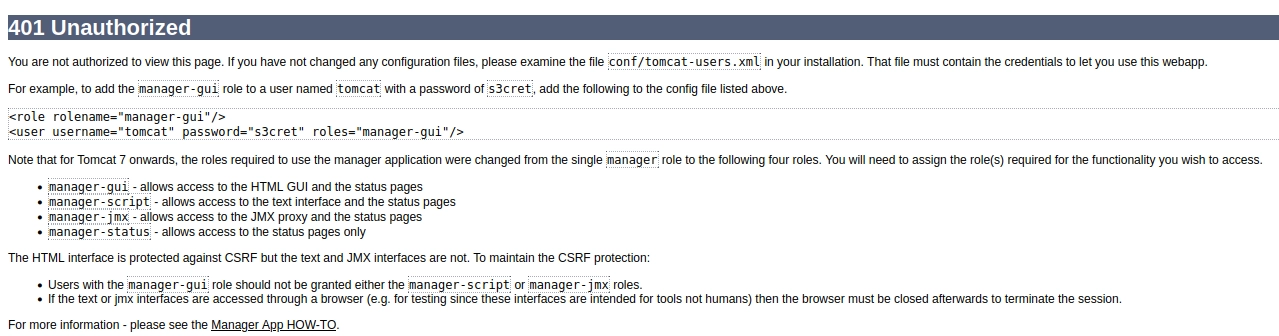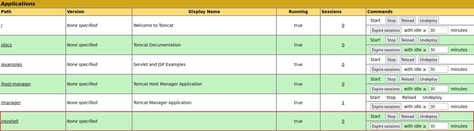 Si pudiésemos acceder al Manager App podríamos intentar subir un archivo .War malicioso el cual nos entablará una reverse shell.