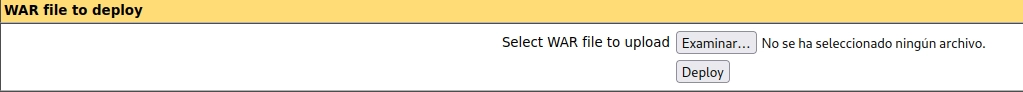 En este momento podemos subir el archivo .War desde el menú mostrado anteriormente.