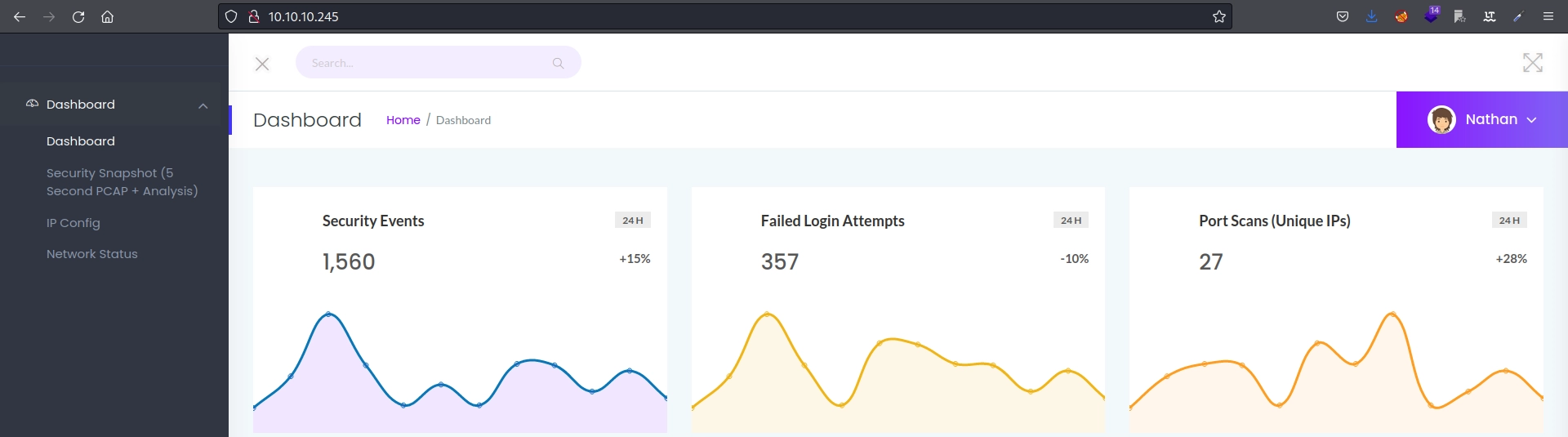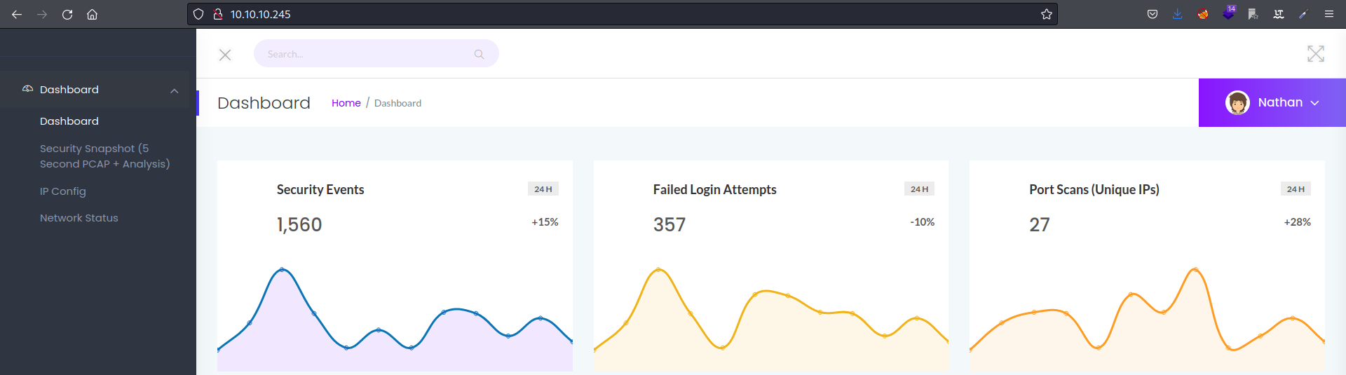 PORTSTATESERVICEVERSION 21/tcp open ftp vsftpd 3.0.3 22/tcp open ssh OpenSSH 8.2p1 Ubuntu 4ubuntu0.2 (UbuntuLinux; protocol 2.0) | ssh-hostkey: | 3072fa:80:a9:b2:ca:3b:88:69:a4:28:9e:39:0d:27:d5:75 (RSA) | 256 96:d8:f8:e3:e8:f7:71:36:c5:49:d5:9d:b6:a4:c9:0c (ECDSA) |_ 256 3f:d0:ff:91:eb:3b:f6:e1:9f:2e:8d:de:b3:de:b2:18 (ED25519) 80/tcp open http gunicorn | fingerprint-strings: | FourOhFourRequest: | HTTP/1.0 404 NOT FOUND | Server: gunicorn | Date: Mon, 18 Jul 2022 01:29:52 GMT | Connection: close | Content-Type: text/html; charset=utf-8 | Content-Length: 232 | <!DOCTYPE HTML PUBLIC "-//W3C//DTD HTML 3.2 Final//EN"> | <title>404NotFound</title> | <h1>Not Found</h1> | <p>The requested URL was not found on the server. If you entered the URL manually please check your spelling and try again.</p> | GetRequest: | HTTP/1.0 200 OK | Server: gunicorn | Date: Mon, 18 Jul 2022 01:29:46 GMT | Connection: close | Content-Type: text/html; charset=utf-8 | Content-Length: 19386 | <!DOCTYPE html> | <html class="no-js" lang="en"> | <head> | <meta charset="utf-8"> | <meta http-equiv="x-ua-compatible" content="ie=edge"> | <title>SecurityDashboard</title> | <meta name="viewport" content="width=device-width, initial-scale=1"> | <link rel="shortcut icon" type="image/png" href="/static/images/icon/favicon.ico"> | <link rel="stylesheet" href="/static/css/bootstrap.min.css"> | <link rel="stylesheet" href="/static/css/font-awesome.min.css"> | <link rel="stylesheet" href="/static/css/themify-icons.css"> | <link rel="stylesheet" href="/static/css/metisMenu.css"> | <link rel="stylesheet" href="/static/css/owl.carousel.min.css"> | <link rel="stylesheet" href="/static/css/slicknav.min.css"> | <!-- amchar | HTTPOptions: | HTTP/1.0 200 OK | Server: gunicorn | Date: Mon, 18 Jul 2022 01:29:46 GMT | Connection: close | Content-Type: text/html; charset=utf-8 | Allow: OPTIONS, HEAD, GET | Content-Length: 0 | RTSPRequest: | HTTP/1.1 400 Bad Request | Connection: close | Content-Type: text/html | Content-Length: 196 | <html> | <head> | <title>Bad Request</title> | </head> | <body> | <h1><p>Bad Request</p></h1> | Invalid HTTP Version 'Invalid HTTP Version: 'RTSP/1.0'' | </body> |_ </html> |_http-title: Security Dashboard |_http-server-header: gunicorn 1 service unrecognized despite returning data. If you know the service/version, please submit the following fingerprint at https://nmap.org/cgi-bin/submit.cgi?new-service : SF-Port80-TCP:V=7.92%I=7%D=7/18%Time=62D4B789%P=x86_64-pc-linux-gnu%r(GetR SF:equest,2A0C,"HTTP/1\.0\x20200\x20OK\r\nServer:\x20gunicorn\r\nDate:\x20 SF:Mon,\x2018\x20Jul\x202022\x2001:29:46\x20GMT\r\nConnection:\x20close\r\ SF:nContent-Type:\x20text/html;\x20charset=utf-8\r\nContent-Length:\x20193 SF:86\r\n\r\n<!DOCTYPE\x20html>\n<html\x20class=\"no-js\"\x20lang=\"en\">\ SF:n\n<head>\n\x20\x20\x20\x20<meta\x20charset=\"utf-8\">\n\x20\x20\x20\x2 SF:0<meta\x20http-equiv=\"x-ua-compatible\"\x20content=\"ie=edge\">\n\x20\ SF:x20\x20\x20<title>Security\x20Dashboard</title>\n\x20\x20\x20\x20<meta\ SF:x20name=\"viewport\"\x20content=\"width=device-width,\x20initial-scale= SF:1\">\n\x20\x20\x20\x20<link\x20rel=\"shortcut\x20icon\"\x20type=\"image SF:/png\"\x20href=\"/static/images/icon/favicon\.ico\">\n\x20\x20\x20\x20< SF:link\x20rel=\"stylesheet\"\x20href=\"/static/css/bootstrap\.min\.css\"> SF:\n\x20\x20\x20\x20<link\x20rel=\"stylesheet\"\x20href=\"/static/css/fon SF:t-awesome\.min\.css\">\n\x20\x20\x20\x20<link\x20rel=\"stylesheet\"\x20 SF:href=\"/static/css/themify-icons\.css\">\n\x20\x20\x20\x20<link\x20rel= SF:\"stylesheet\"\x20href=\"/static/css/metisMenu\.css\">\n\x20\x20\x20\x2 SF:0<link\x20rel=\"stylesheet\"\x20href=\"/static/css/owl\.carousel\.min\. SF:css\">\n\x20\x20\x20\x20<link\x20rel=\"stylesheet\"\x20href=\"/static/c SF:ss/slicknav\.min\.css\">\n\x20\x20\x20\x20<!--\x20amchar")%r(HTTPOption SF:s,B3,"HTTP/1\.0\x20200\x20OK\r\nServer:\x20gunicorn\r\nDate:\x20Mon,\x2 SF:018\x20Jul\x202022\x2001:29:46\x20GMT\r\nConnection:\x20close\r\nConten SF:t-Type:\x20text/html;\x20charset=utf-8\r\nAllow:\x20OPTIONS,\x20HEAD,\x SF:20GET\r\nContent-Length:\x200\r\n\r\n")%r(RTSPRequest,121,"HTTP/1\.1\x2 SF:0400\x20Bad\x20Request\r\nConnection:\x20close\r\nContent-Type:\x20text SF:/html\r\nContent-Length:\x20196\r\n\r\n<html>\n\x20\x20<head>\n\x20\x20 SF:\x20\x20<title>Bad\x20Request</title>\n\x20\x20</head>\n\x20\x20<body>\ SF:n\x20\x20\x20\x20<h1><p>Bad\x20Request</p></h1>\n\x20\x20\x20\x20Invali SF:d\x20HTTP\x20Version\x20'Invalid\x20HTTP\x20Version:\x20'RTSP SF:/1\.0''\n\x20\x20</body>\n</html>\n")%r(FourOhFourRequest,189 SF:,"HTTP/1\.0\x20404\x20NOT\x20FOUND\r\nServer:\x20gunicorn\r\nDate:\x20M SF:on,\x2018\x20Jul\x202022\x2001:29:52\x20GMT\r\nConnection:\x20close\r\n SF:Content-Type:\x20text/html;\x20charset=utf-8\r\nContent-Length:\x20232\ SF:r\n\r\n<!DOCTYPE\x20HTML\x20PUBLIC\x20\"-//W3C//DTD\x20HTML\x203\.2\x20 SF:Final//EN\">\n<title>404\x20Not\x20Found</title>\n<h1>Not\x20Found</h1> SF:\n<p>The\x20requested\x20URL\x20was\x20not\x20found\x20on\x20the\x20ser SF:ver\.\x20If\x20you\x20entered\x20the\x20URL\x20manually\x20please\x20ch SF:eck\x20your\x20spelling\x20and\x20try\x20again\.</p>\n");